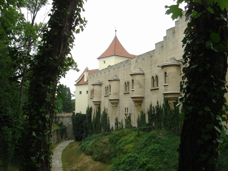 Интересно, что снаружи замок кажется миниатюрным. На самом же деле он боооольшой. А еще интересно, что после хождений по комнатам нас повели по узкому коридорчику, с низким потолком, потом по лесенке вниз... я думала это какой-то черный выход. А нет. Оказалось под замком есть пещера. Представляете?