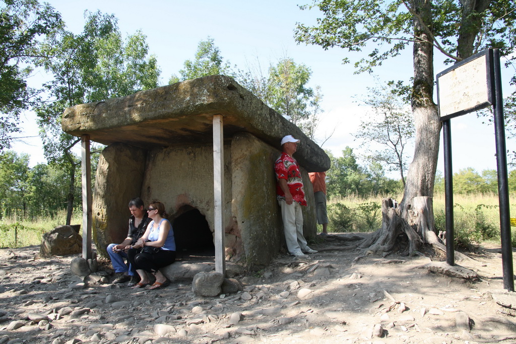 Многие люди сидели возле дольменов, видимо, считается, что он обладает какой-то позитивной энергией.