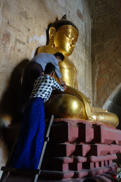 В одном из храмов Волчий увидел как золотят Будду сусальным золотом.