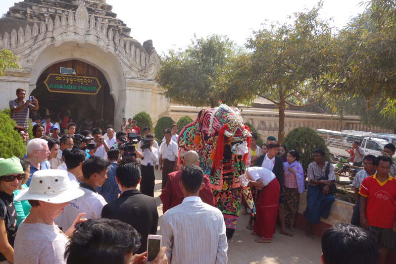 Самый популярный храм, Ананда оказался самым ужасным. Там были толпы туристов, очень шумно, как на базаре. Внутри ничего особенного, а наверх и вовсе нельзя подняться. Правда как раз в тот момент, когда мы там были приехал какой-то видимо важный монах и в его честь было выступление - музыка и танцующий слон.