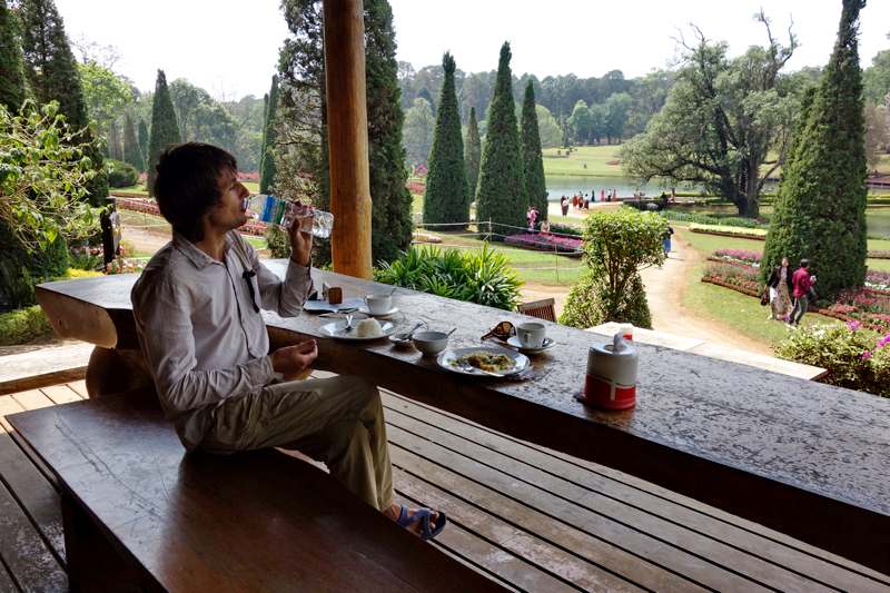 В ресторане было красиво - деревянные столы, вид на сад и пруд, цены на еду были больше чем обычно но не намного. Мы отдохнули и наелись, теперь можно и гулять.