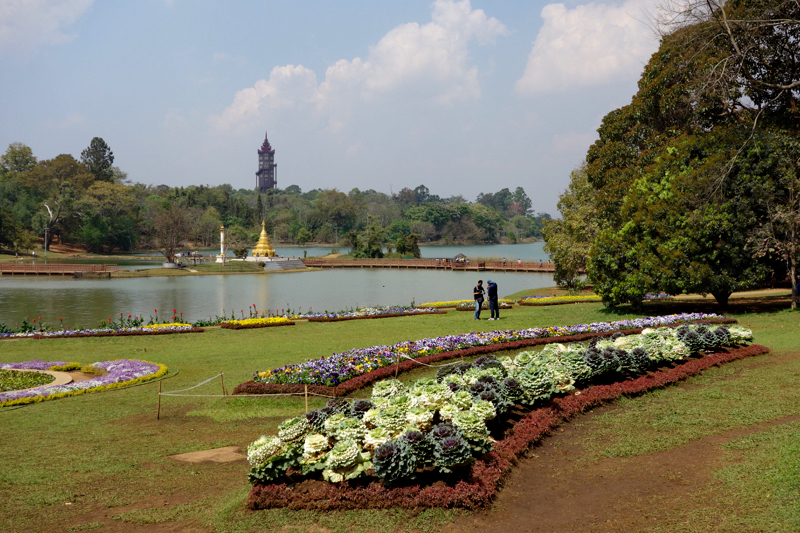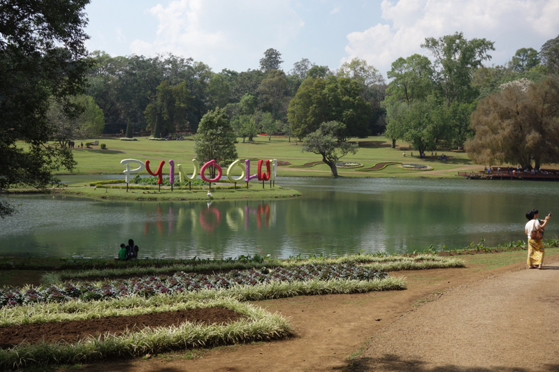 Центр парка с прудом, лебедями и названием города - Pyin Oo Lwin