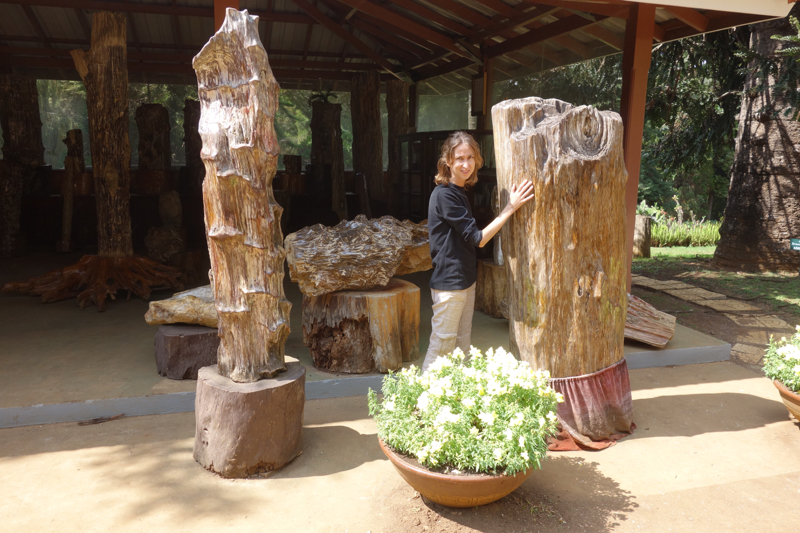 Сначала мы нашли выставку удивительных окаменелых деревьев. Меня это очень потрясло, как дерево превратилось в красивый разноцветный камень. Я такого никогда раньше не видела. Там стояли огромные куски дерева, только холодные на ощупь и как-будто покрыты толстым слоем разноцветного лака, не знаю даже как это правильно описать.