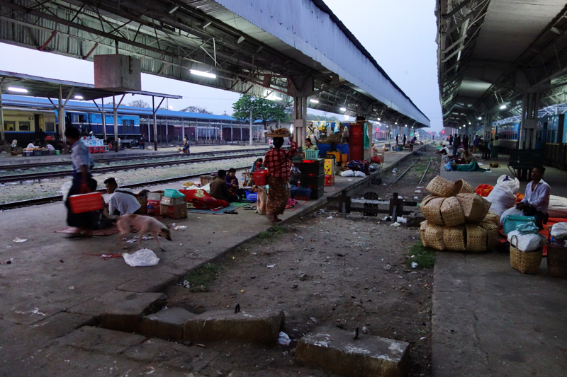 Вокзал в Тхази. Люди спали прямо на платформе.