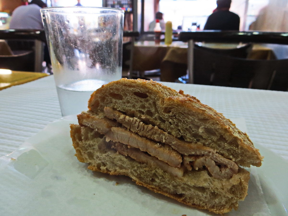 Bifana and water in Casa das Bifanas - 3.75 (bifana costs 2 euro in menu, but probable without taxes…)
