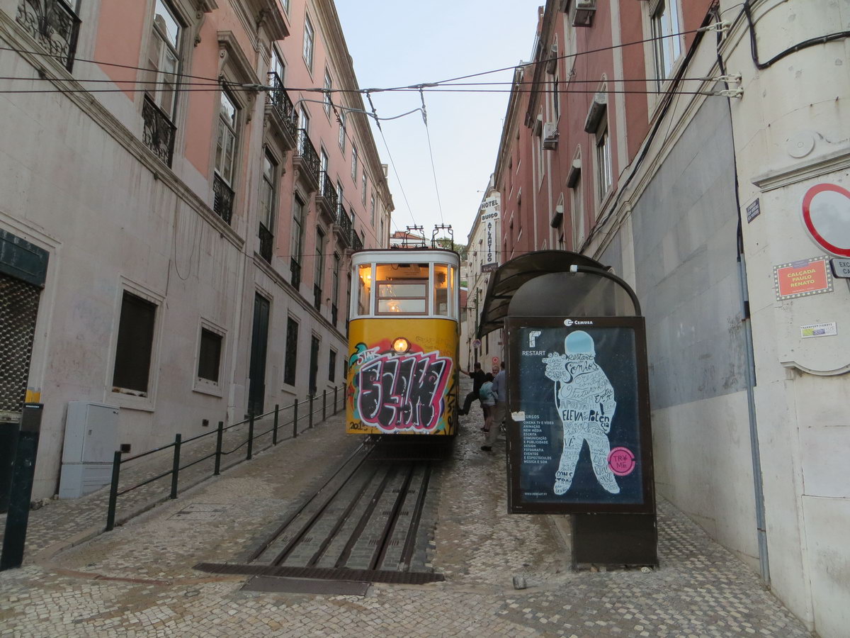At the beginning of Avenida da Liberdade you could catch Gloria funicular. It takes you to the best observation area in Lisbon - Miradouro de São Pedro de Alcantara.