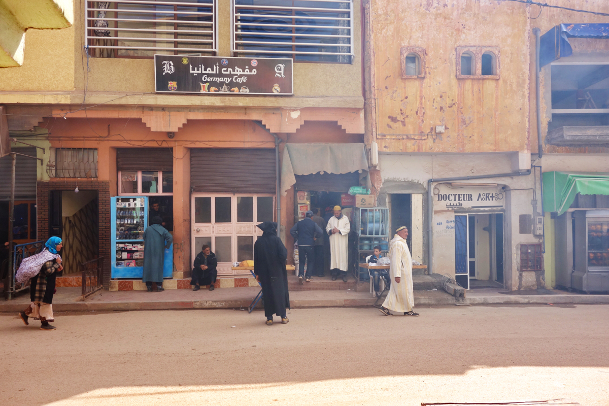 Где-то на полпути останавливаемся в небольшом городке выпить чаю. Городок очень колоритный и многолюдный. Садимся в кафе за столиком на улице, заказываем чай и наблюдаем за жизнью городка.