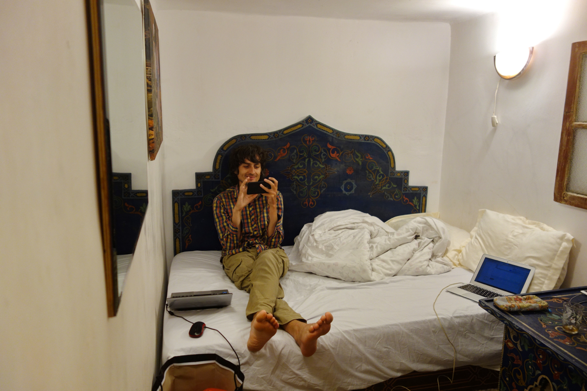Медина - так в Марокко называют старую часть города, чаще всего окруженную стеной. В медине очень узкие улицы и единственный вид транспорта там - ослы (правда потихоньку начинают просачиваться и мопеды, к сожалению). Наш отель теоретически находится сразу при входе в медину. Мы специально так его выбрали чтобы не очень далеко идти от парковки.