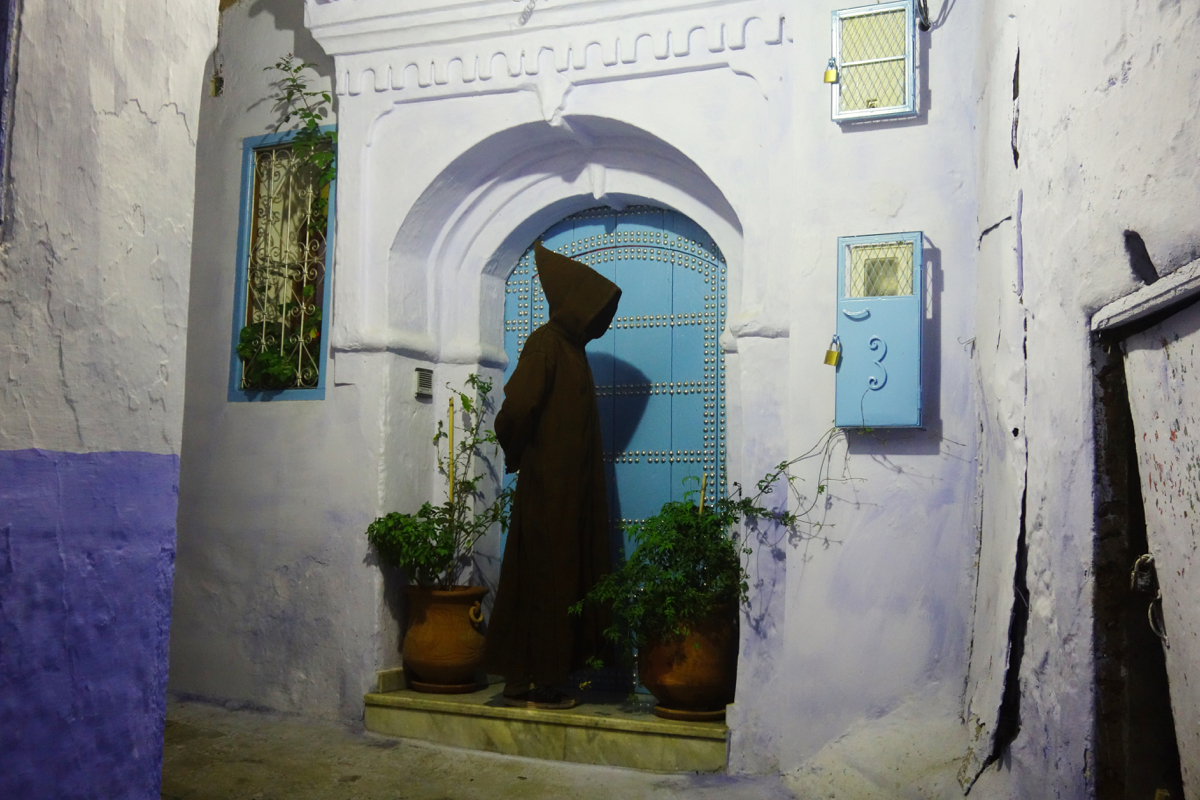 Вечером все фонарики горят и городок еще больше напоминает сказочный. Волчий отправился гулять в джеллабе. Это не остается без внимания со стороны местного населения, все очень по-доброму говорят что очень классная джеллаба.