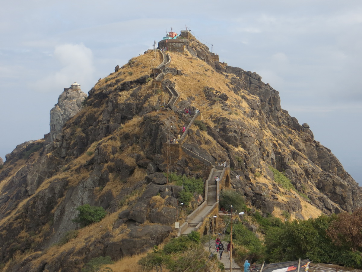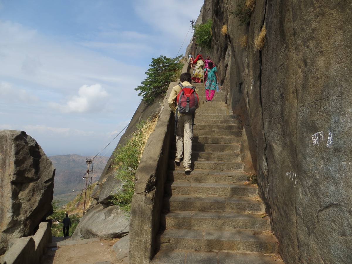Вскоре присели покушать печенье с видом на горы и озеро – красиво тут. Тишина, умиротворение, чистый воздух. Тут начался достаточно крутой подъем, силы были на исходе. Мы добрались сначала до второго храма, а потом и до третьего . В четвертый, последний храм сил идти уже не было. Да и самое интересное мы уже посетили и на самую высокую точку Гирнара таки добрались. Сколько мы прошли ступенек - загадка. На обратном пути разговорились с приятного вида индусом, оказалось, он приехал из Мумбаи, поднимается на Гирнар уже 15 раз – говорит для индуистов это священное место.