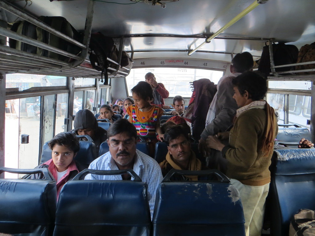 Езда в государственных автобусах в Индии, особенно, на дальние расстояния иногда достаточно утомительна. Людей набивается много, они с тюками пытаются пробраться в узком проходе. Расстояние в 200 км мы преодолели за 5 часов – автобус останавливается в каждой маломальской деревушке. Вероятно, надо спрашивать в кассе про наличие автобусов-экспрессов.