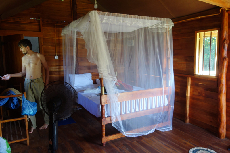 Поселившись, мы пошли на пляж. Выход на пляж через нашу пальмовую рощу. Мы вышли в лагуну. Не смотря на то что это лагуна, тут сильные волны и каменистое дно, так что плавать страшно. Пошли на соседний пляж, там где были вчера - там волны еще больше. Так удивительно - океан, пляж, а плавать невозможно. Дно немного каменистое и волны настолько большие, что заходить очень страшно. Был разгар дня, а на пляже никого кроме нас не было. В нашей лагуне был небольшой природный бассейн, лужица окруженная камнями. Немного поплескались там.