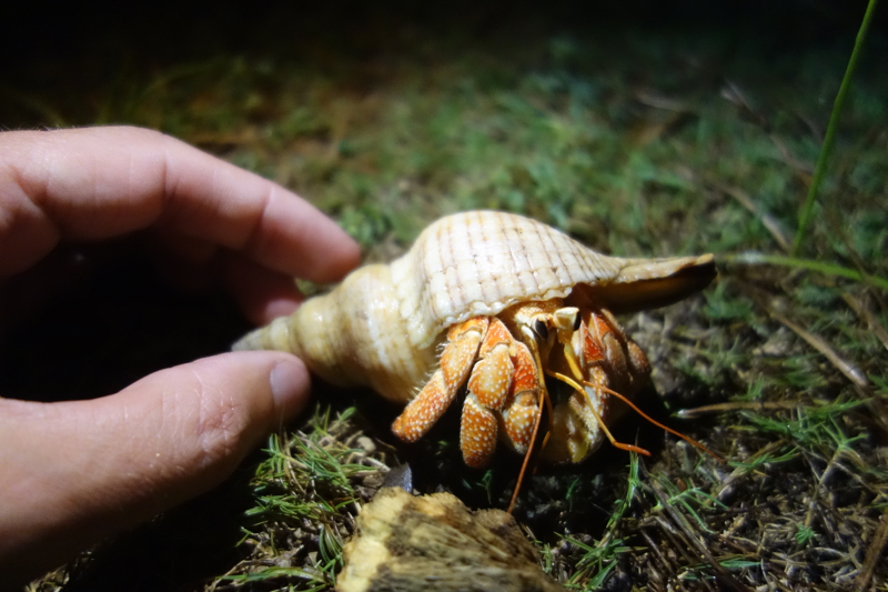 Около 9 вечера пошли на пляж искать черепах, которые по ночам выходят на берег. Мы шли в темноте по песку подсвечивая себе путь телефонами. Крабов отшельников стало намного больше чем днем. Мы видели совсем больших особей. Вскоре к нам подошел какой-то мужичек, я плохо его разглядела в темноте. Он сказал что тут нельзя светить фонарями, чтобы не беспокоить черепах. А если мы хотим увидеть черепах то надо заплатить денег. Я совсем опешила от такого положения вещей. Мы с Волчим переглянулись, поблагодарили мужичка и пошли домой стараясь не наступить на крабиков которые разбегались целыми стайками из под наших ног.