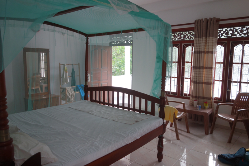 В Морагалле мы думали пожить в том же доме художника где уже жили. Однако у него оказалось занято. У нас оставался еще один вариант - мрачноватый отель прям на пляже который мы обнаружили в тот раз (и управляющий готов был сдать нам комнату за 15$). Но когда мы пришли поинтересоваться свободными номерами, вместо управляющего ланкийца нас встретила белая женщина, видимо из Европы. Она сообщила что ее комната (а по факту это была темная конура) стоит 45$ и торговаться конечно не была настроена.