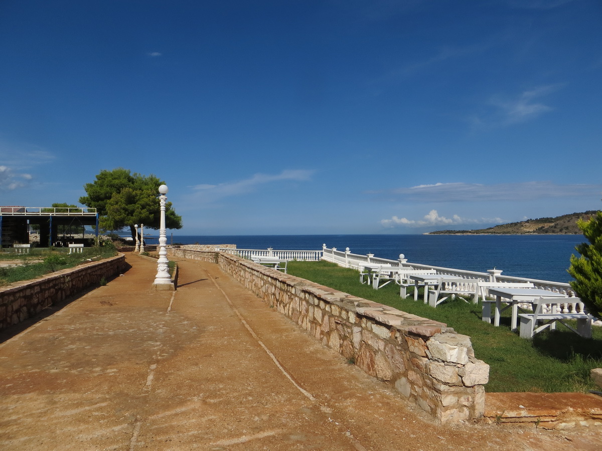Then by pedestrian road looks like seafront, but with broken lights we reached another beaches, near the centre of the Ksamil town with a lot of bars and people.