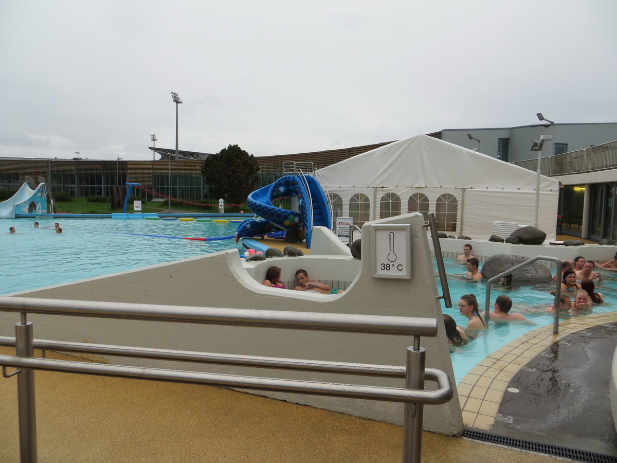 There was a water pool near our camping and we decided to go there. We liked it a lot (later we will visit water pools quite often as they all are very nice and rather cheap in Iceland).