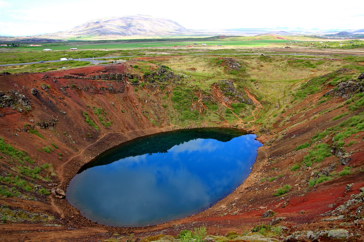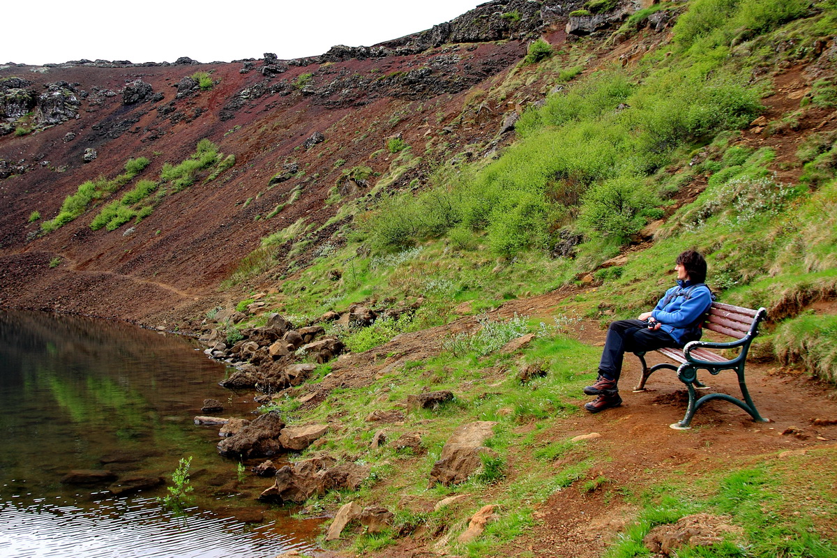 Our first destination was Kerid lake. For some time, volcanologists considered Kerid as an explosion crater. But later research didn’t find any evidence of this theory, thus now scientist tend to believe that Kerid lake was formed by a small magma chamber beneath the crater, that was filled with ground water. (don't think I am too clever, this information is taken from the info board near the lake)
