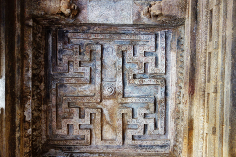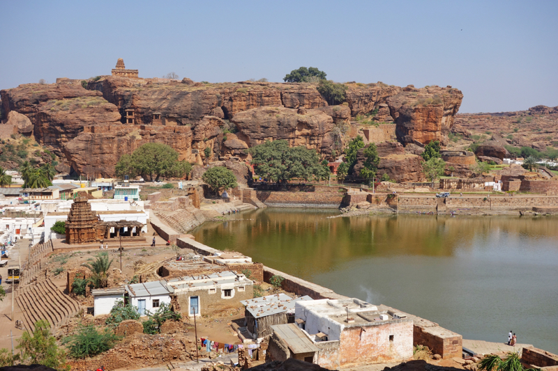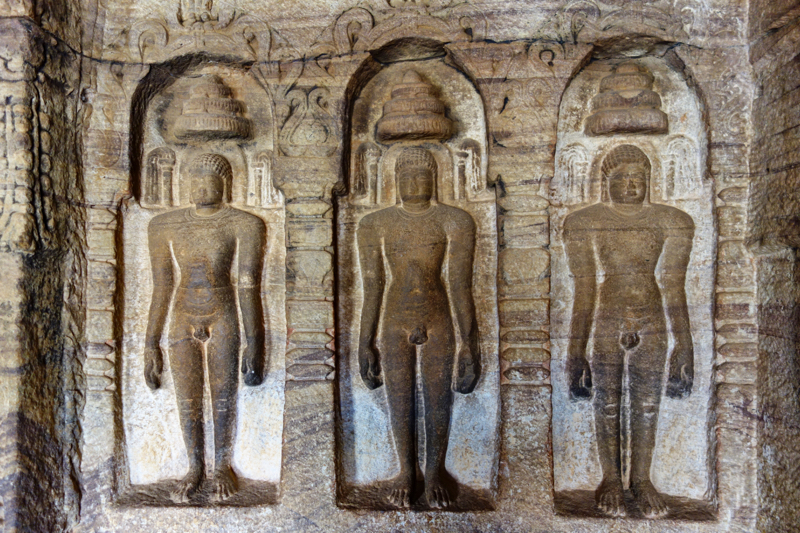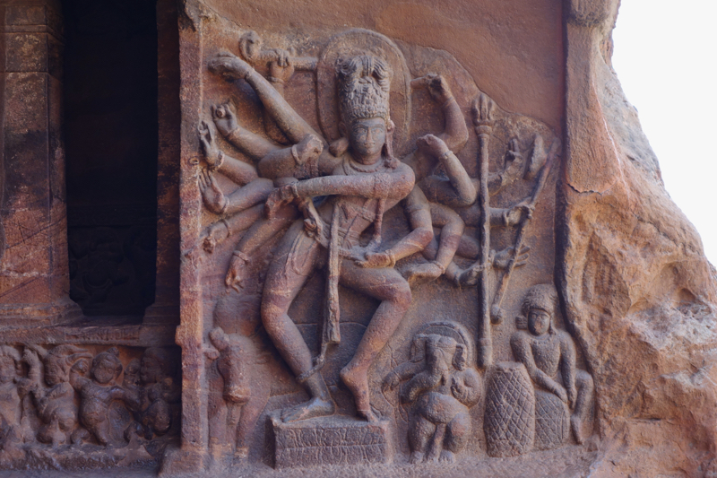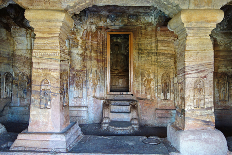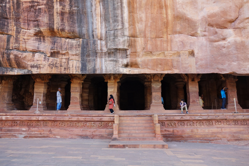 После Эллоры и Аджанты пещерами нас конечно не удивишь, если честно, но тут они все равно очень красивые - много резьбы по камню - на потолке, на полу, на колоннах. Много вырезанных статуй. И еще очень красивый красноватый цвет скал.