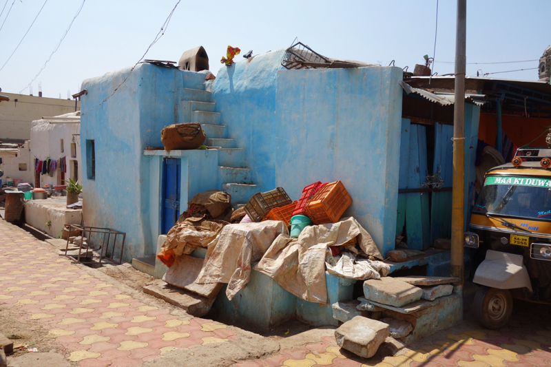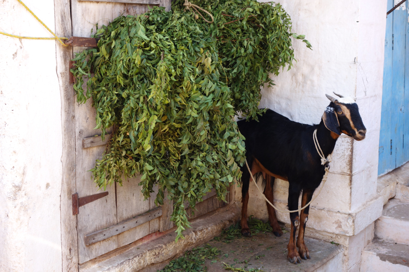 После пещер мы пошли к озеру, тут стирали белье. Домой возвращались по другой улочке,. Там бегали кабанчики, выискивали еду в мусоре. А еще была привязанная коза и милый голубой домик с лесенкой на крышу.