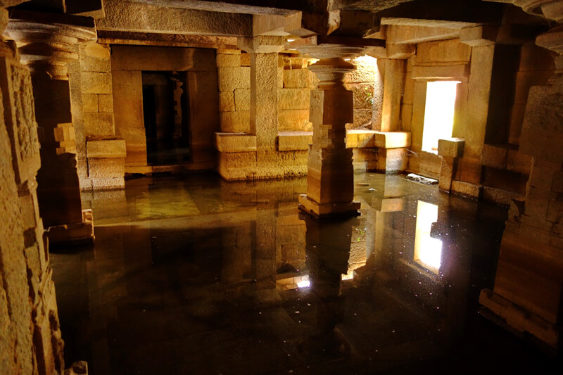 Силы почти покинули нас, но по пути домой мы остановились осмотреть подземный храм Шивы. Последний зал тут был затоплен водой.