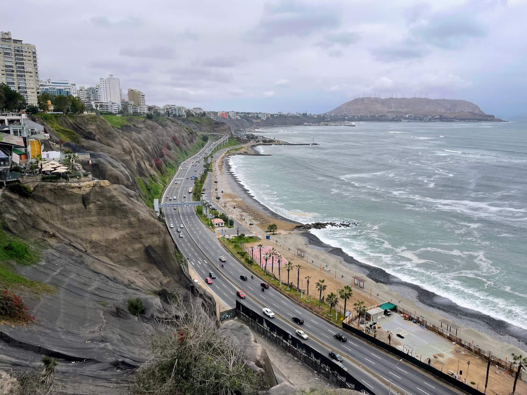 Тихий океан. Виглядає не дуже привабливо. В океані плавали поодинокі серфінгісти. Зараз в Перу зима. Можливо влітку буде пляжний сезон....
